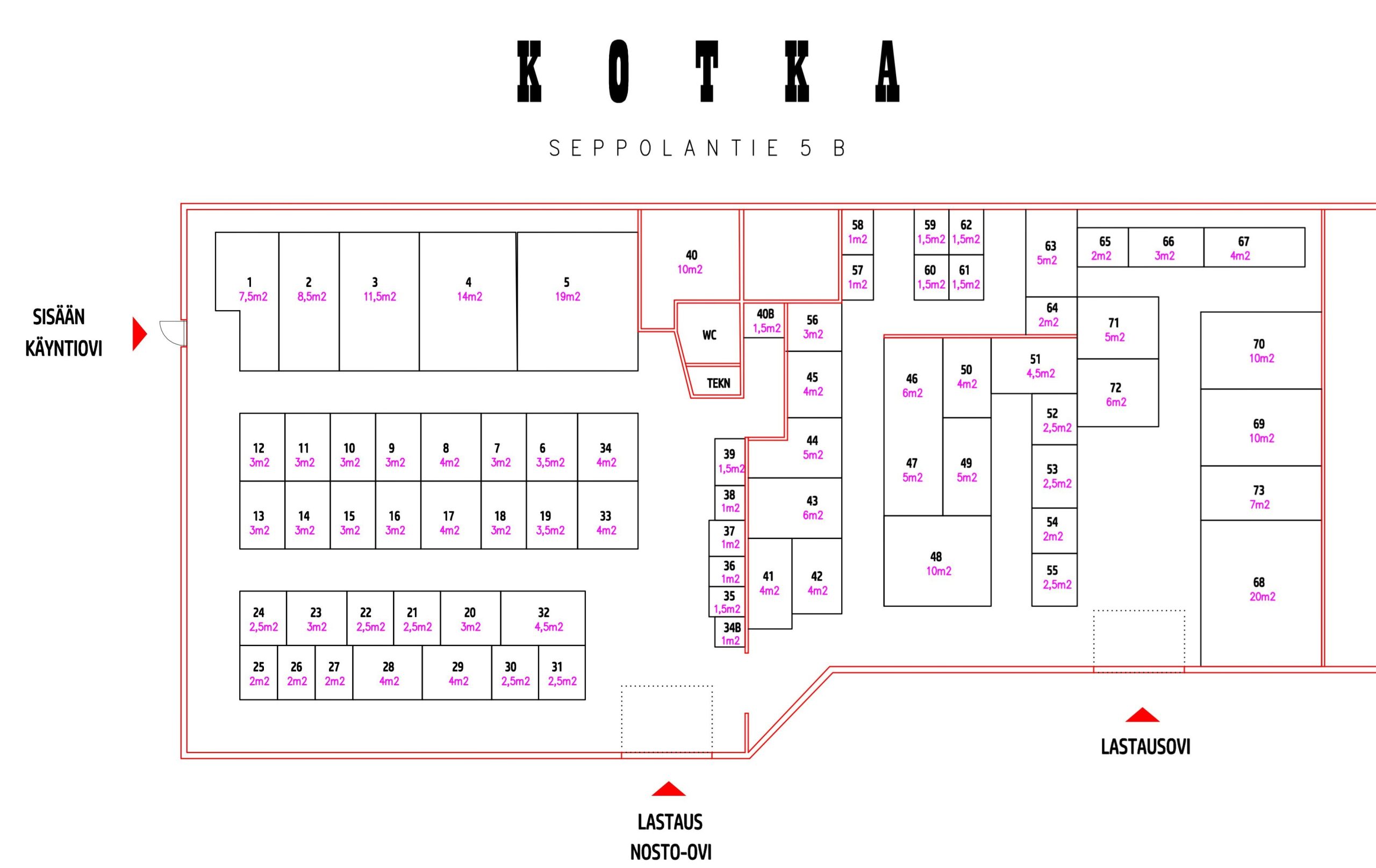 Kotkan tehovaraston löydät heti Kyminlinnan liittymän eteläpuolelta. Tehovarastolle pääset helpoiten kääntymällä Huumantieltä Seppolantielle, jolloin hallin löytyy aivan tien lopusta. Lastausovien vieressä on autoille tilaa. Keltainen käyntiovi aukeaa soittamalla ovessa olevaan puhelinnumeroon. Käyntiovi löytyy Hyväntuulentien puoleisesta päädystä.